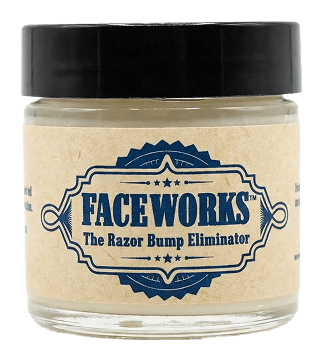 Face Works's Patented formulation Eliminates existing Razor bumps, while providing Protection against future bumping due to shaving.